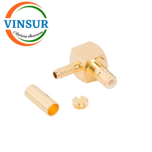 11622014 — RF CONNECTOR – 50 OHMS , SMB FEMALE , RIGHT ANGLE , CRIMP TYPE , RG316, RG174, RG188, LMR100 CABLE